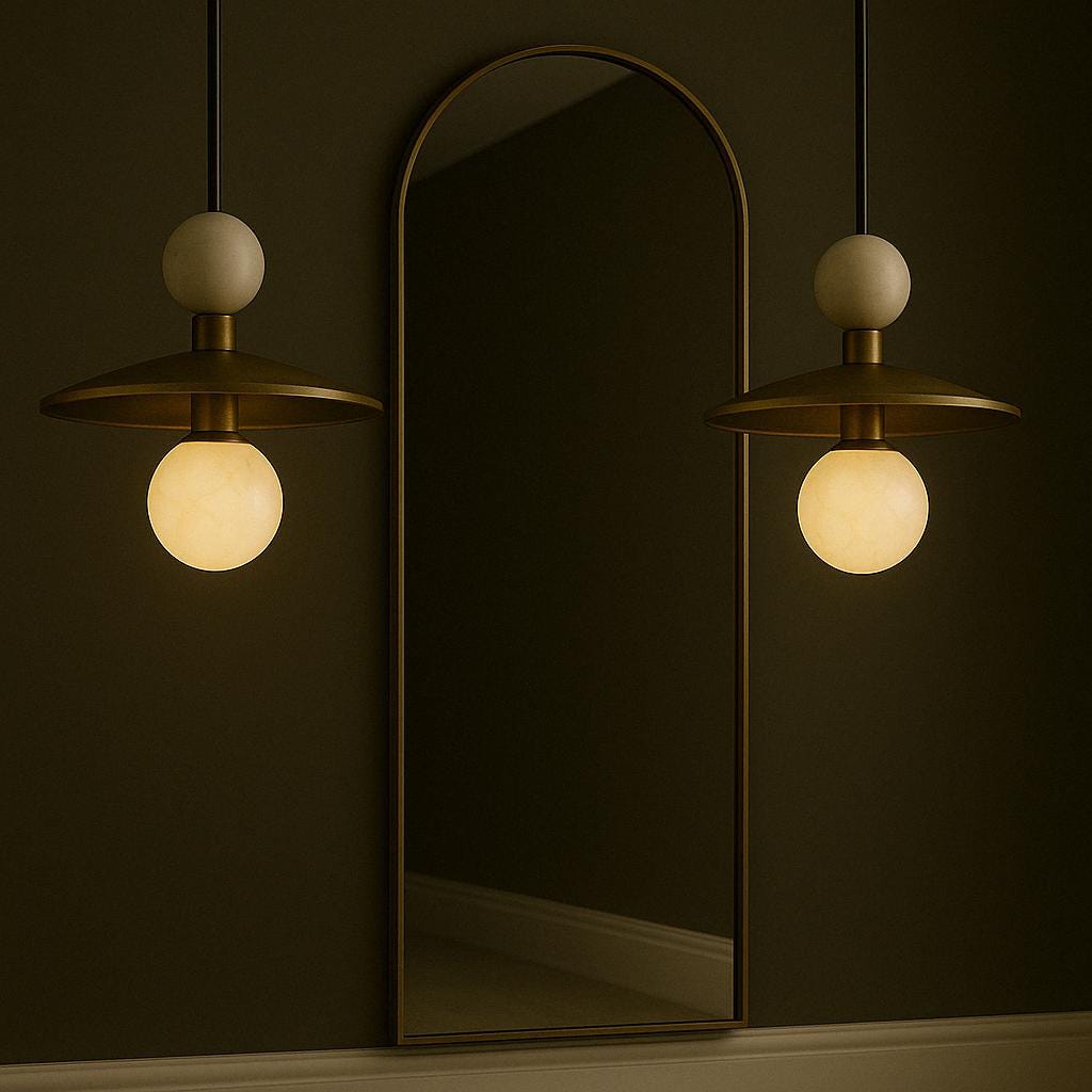 lluminate your space with this luxurious modern pendant light. Featuring a brass base, marble accents, and a golden amber glass bulb, this statement light fixture blends elegance with functionality. Ideal for art deco or mid-century modern interiors, it’s perfect for enhancing living rooms, bedrooms, or hallways with warm, stylish lighting. The Wall Sconce is suitable for bathrooms living rooms and bedside lamp.