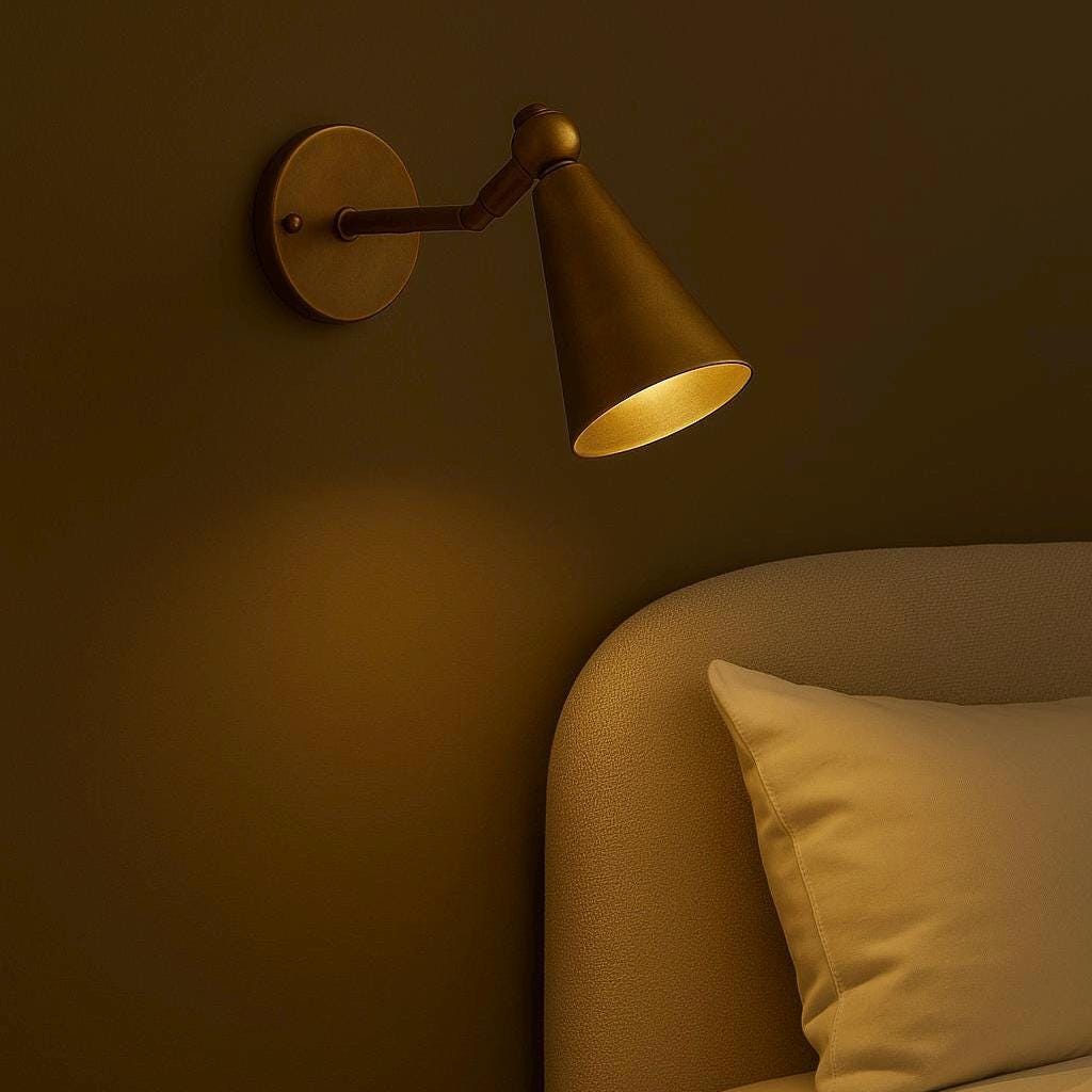 Modern Brass Cone Wall Sconce – Adjustable Bedside Reading Light | Mid-Century Style