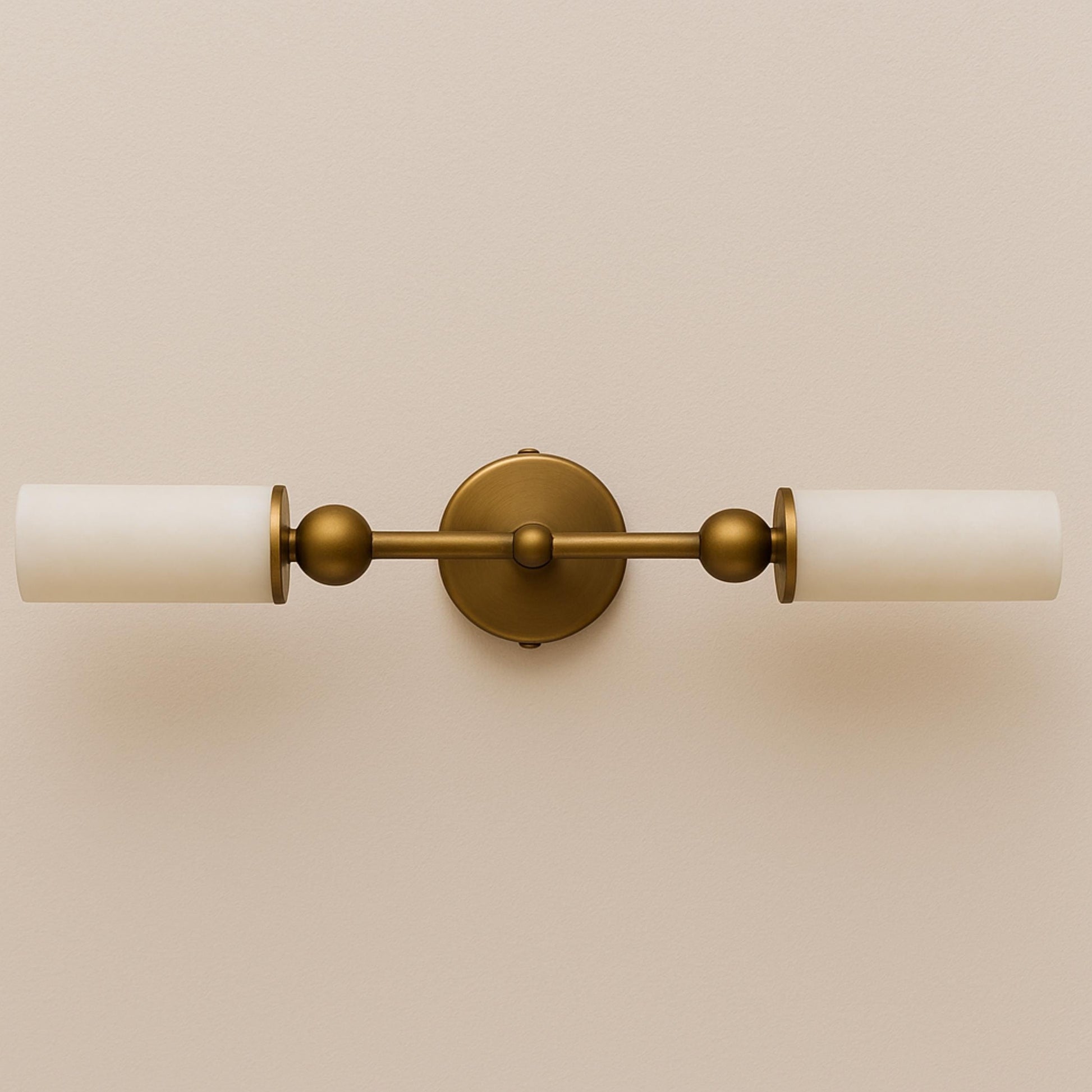 Double Alabaster Wall Sconce, Modern Brass Wall Lamp, Mid Century Wall Light Sconce, Bathroom Vanity Lights, Mirror Sconce