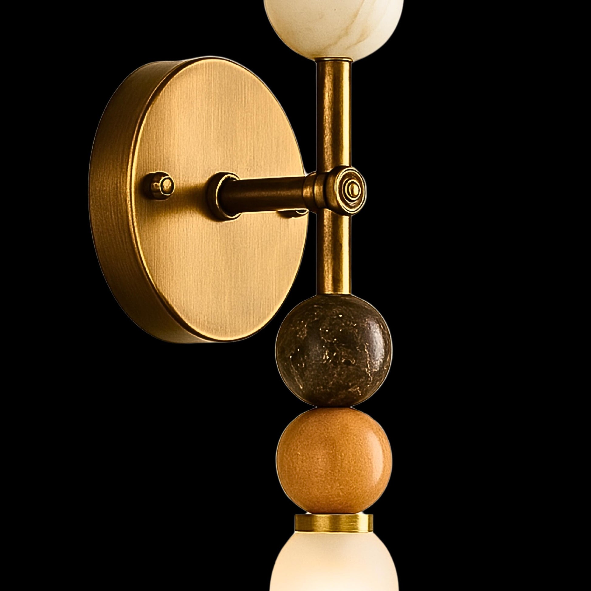 Bring a bold touch of artisan craftsmanship into your space with our Handmade Marble Wall Sconce, a one-of-a-kind fixture that fuses natural stones, and brushed metal finishes. Topped with a frosted glass globe, this sconce casts a soft, warm glow while acting as a sculptural piece of modern decor.