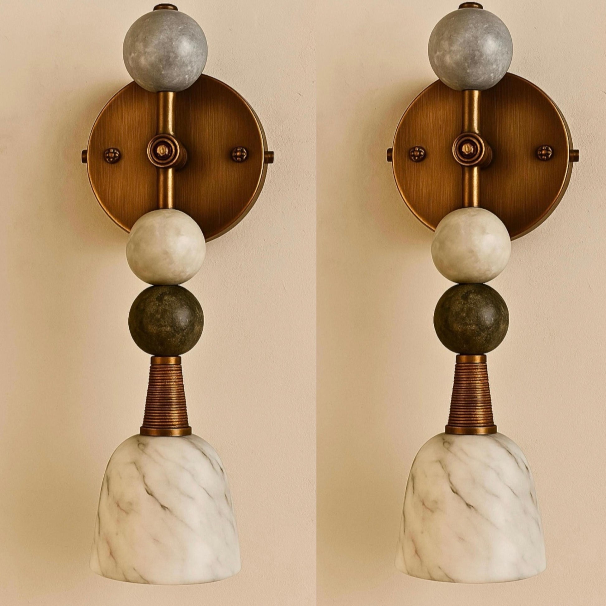 Set of Two Marble Stone Wall Sconce Light, Indoor Wall Light Sconce, 2 Bedroom Wall Lamp, Mid Century Modern Wall Sconce Vintage Wall Sconce